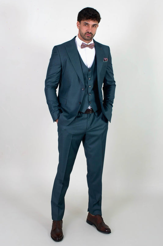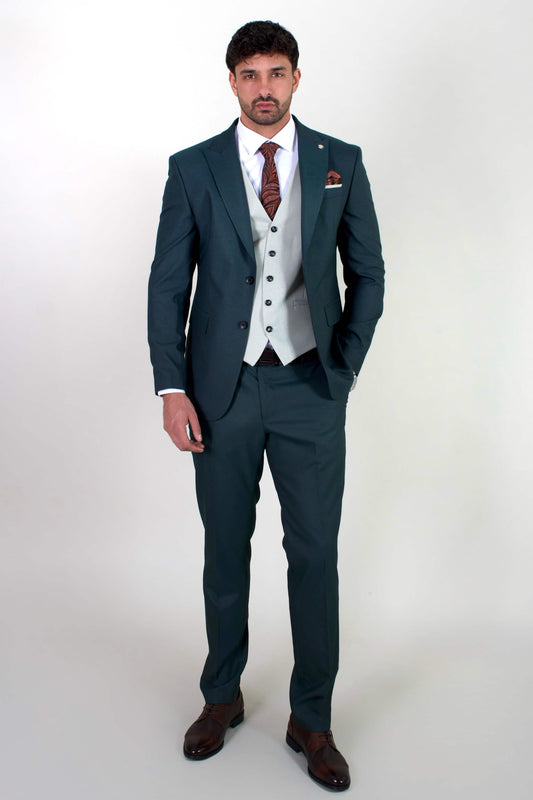 Мъжки тъмнозелен костюм от три части с двулицев елек