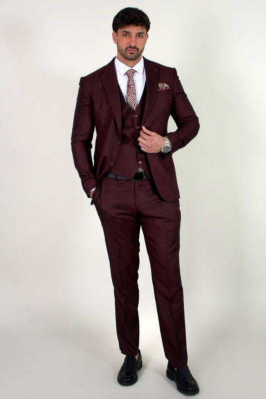 Луксозна мъжка риза в цвят бордо Slim Fit от премиум памук