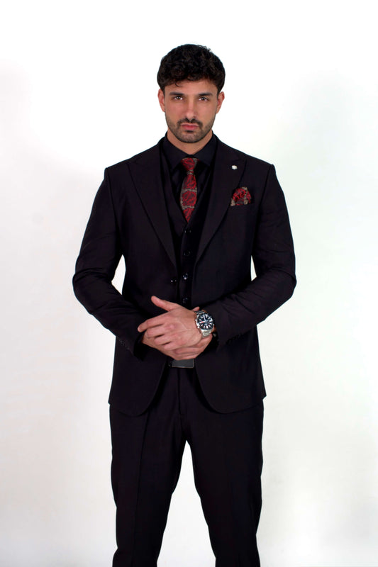 Луксозна мъжка вратовръзка в черно и червено с флорални мотиви